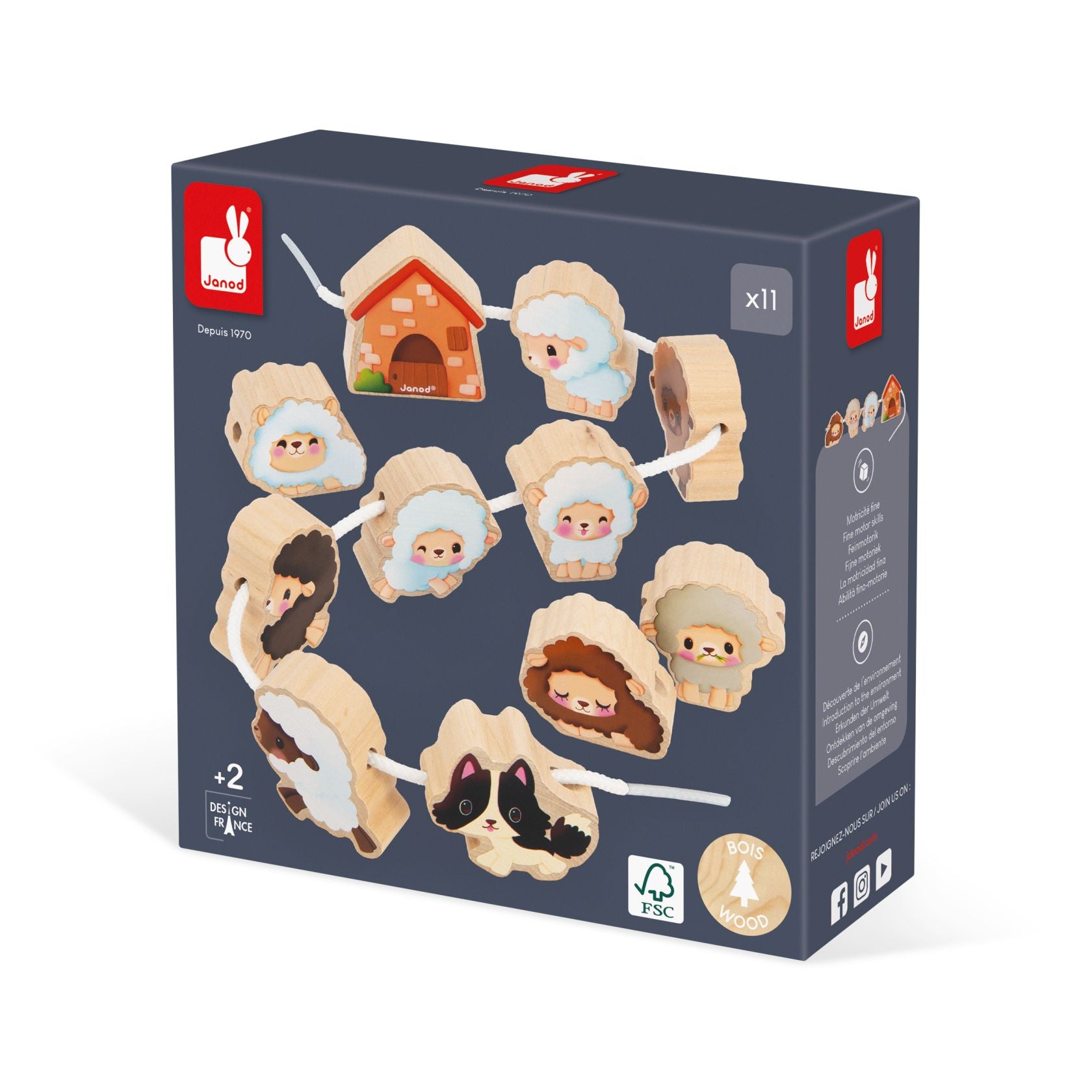 Set de 11 piezas de madera y 2 cordones