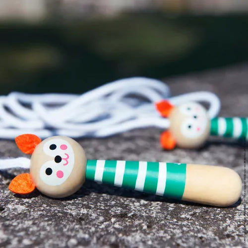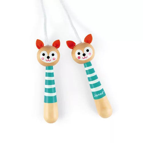 Bonita cuerda para saltar hecha de madera maciza y fieltro para las orejas. Cuerda : 2 metros, ajustable