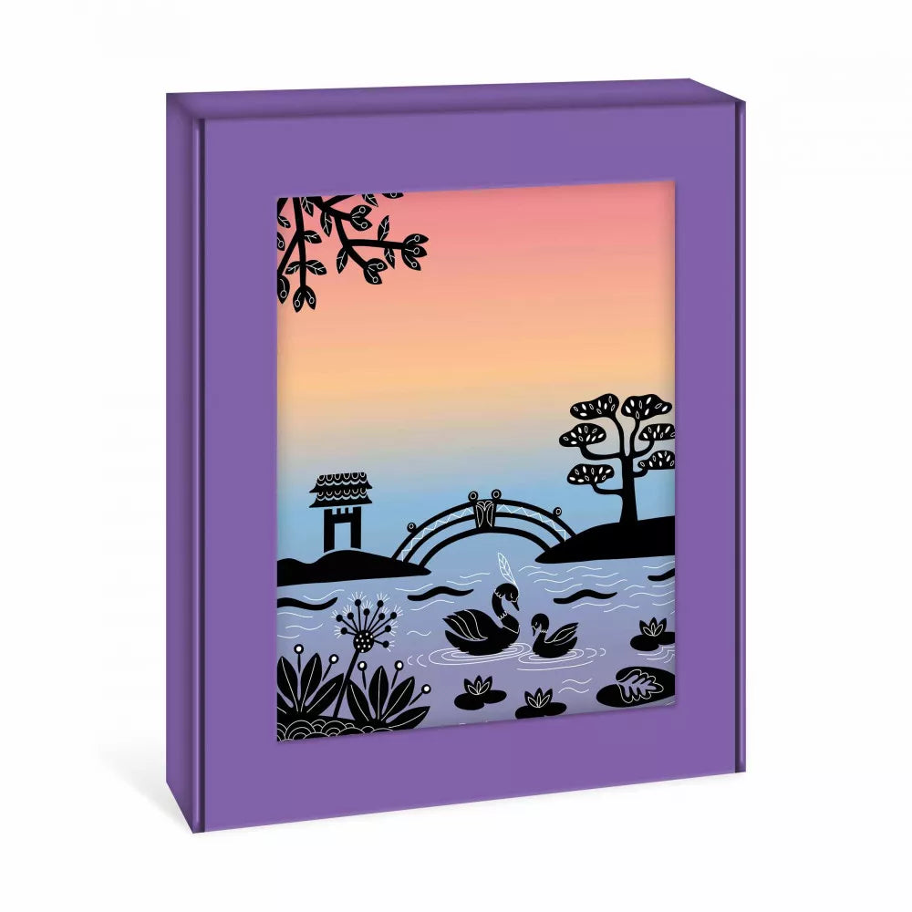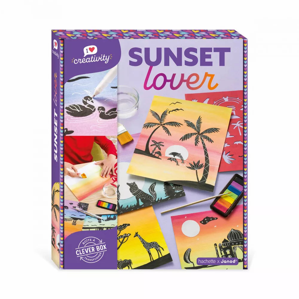 A todo el mundo le gustan las puestas de sol, así que es genial poder crear con pintura sus propias escenas con degradados de color. Este estuche creativo sirve a los niños a partir de 8 años para hacer 5 cuadros con un fondo de anochecer y dibujos de siluetas negras en primer plano. Así que manos a la obra con las instrucciones, los 2 pinceles, la paleta de 7 colores de acuarela, las 2 láminas de plantillas y el boli blanco para añadir detalles a las siluetas negras. Y gracias a la ingeniosa Clever Box se puede transformar la caja del kit en marco para una de las obras. Se necesitan entre 6 y 7 horas y media para finalizar los 5 cuadros. Esta actividad desarrolla la creatividad y la motricidad fina. Forma parte de la gama I Love Creativity, que da a los mayores todo lo necesario para expresar su creatividad